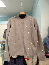 黄色い小花の刺繍が可憐なカーディガン。トラッド好きな方におす グレー系、オフ系があります。 カーディガン サービス価格 4,400円(税込) |